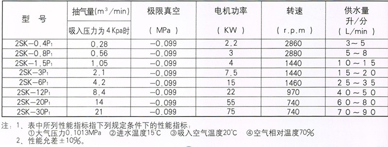 2SK系列使用于吸入壓力低于-0.08MPa的工況條件,2SK-P1系列使用吸入壓力-0.096MPa的工況條件。